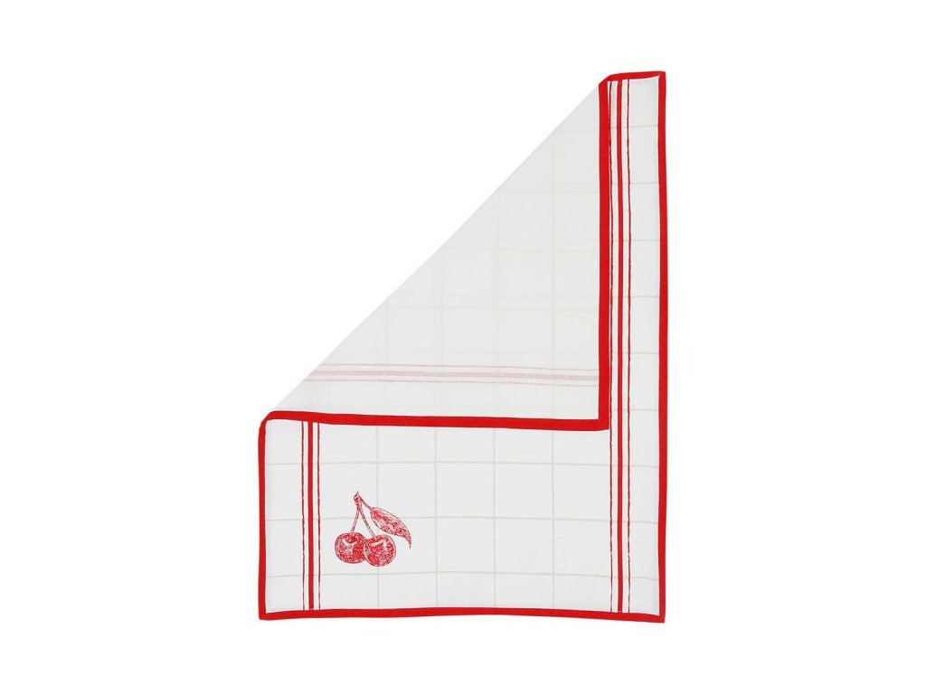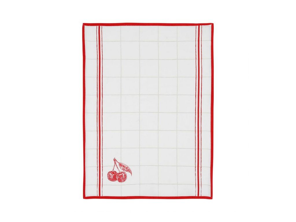 Bavlnená kuchynská utierka s uškom zabalená v sklenenom pohári s viečkom. Motív čerešní a károvaná vzor. Každý milovník vidieckeho štýlu ocení tento štýlový textil z francúzskej dielne Comptoir de Famille. Rozmer utierky 70x50cm.