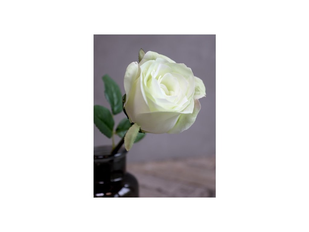 Umelá ruža s lístkami, ktorú nerozoznáte od tej živej. Stonku môžete zohnúť. Farba je mierne zelená.