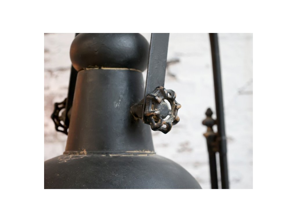Stojanová lampa v štýle Factory. Kovové telo aj tienidlo.