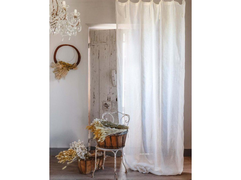 Elegantný jednoduchý dlhý ľanový záves v krémovej farbe.