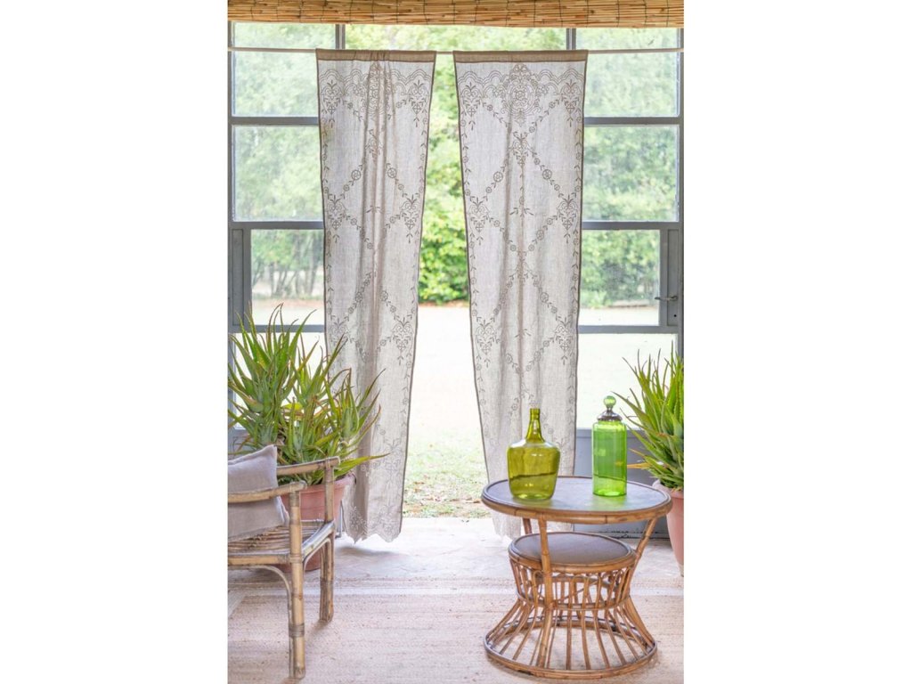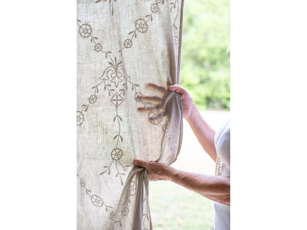 Záves má tunel na navlečenie na tyčku, vďaka čomu sa jednoducho inštaluje a pôsobí čisto a elegantne. Kombinácia ľanu a bavlny zaručuje prirodzený vzhľad, pevnosť a kvalitné spracovanie. Ideálny do kuchyne, spálne aj vidieckeho interiéru. Dizajn a spracovanie sú charakteristické pre toskánsku značku Blanc Mariclò.