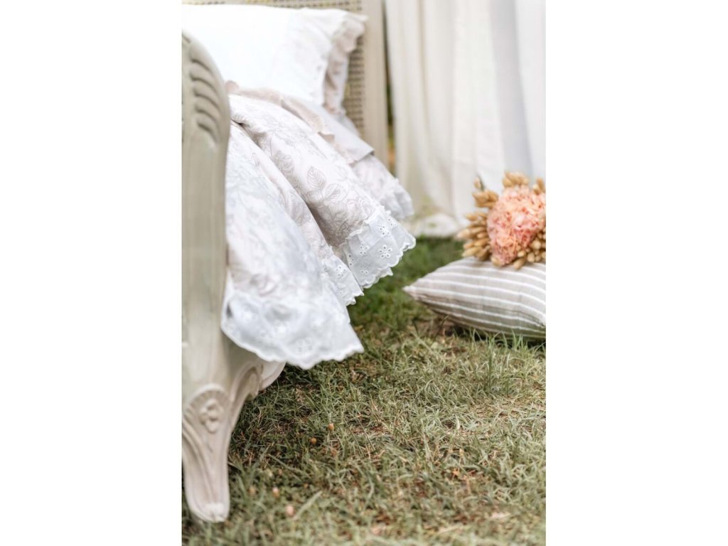 Elegantný a romantický prešívaný prehoz-prikrývka z jemnej mikrofibry s madeirovým volánom z kolekcie Fru Fru od toskánskeho výrobcu Blanc Mariclò.
