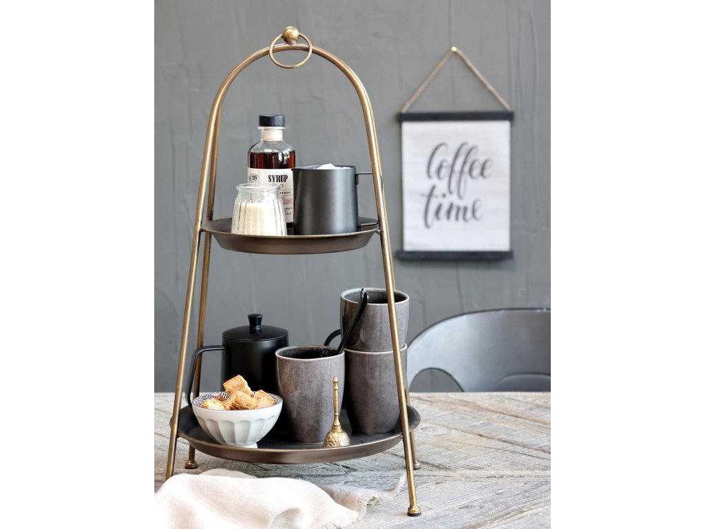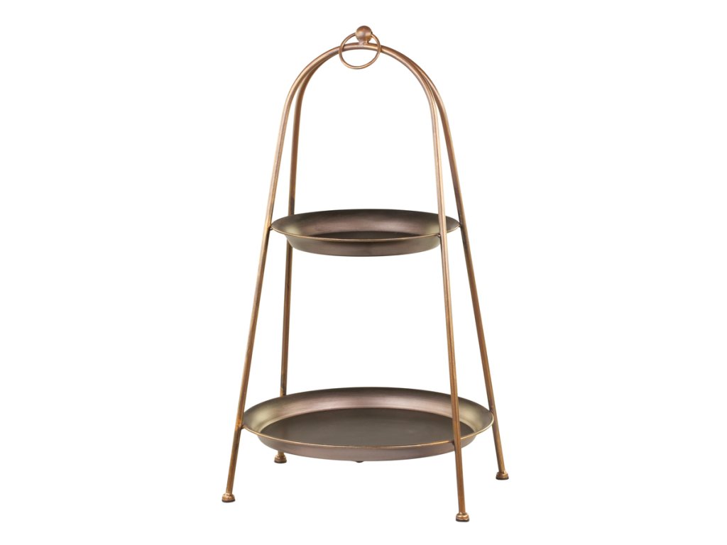 Mosadzný etažér s dvomi poschodiami.