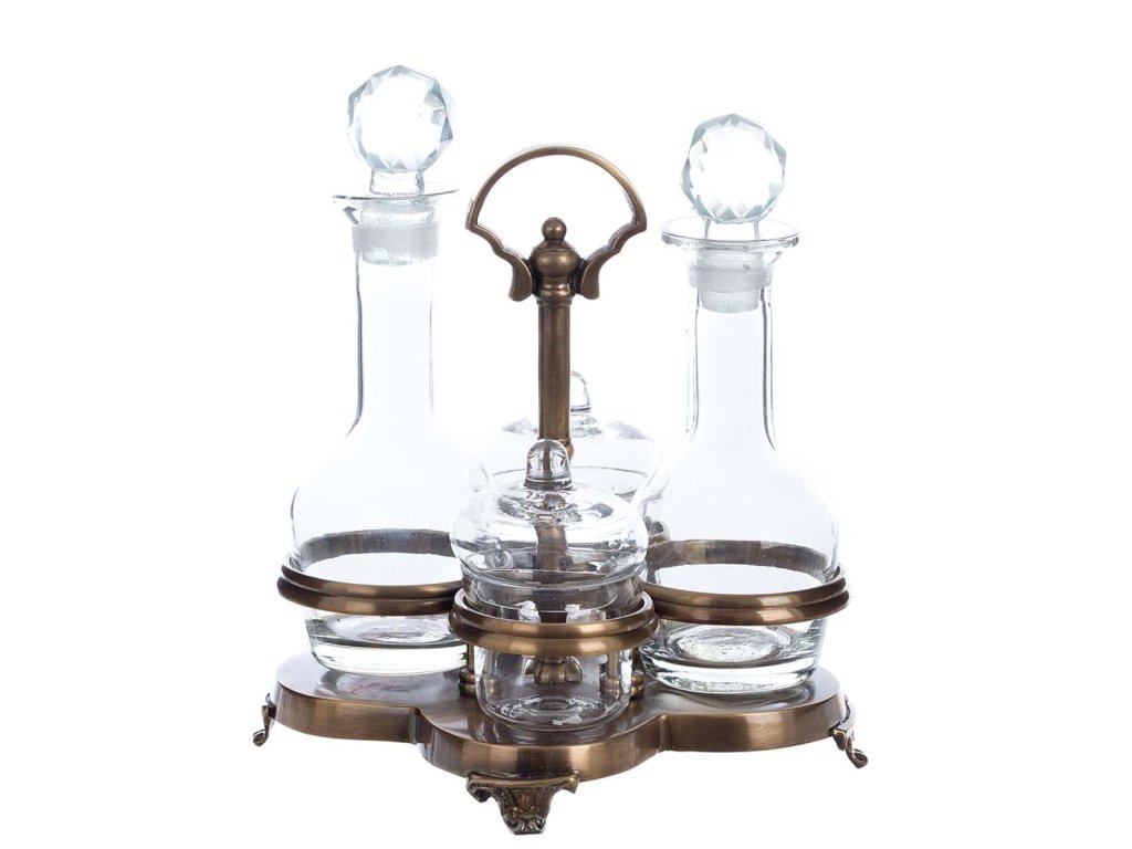 Set 4 ks – olej, ocot, soľ, korenie z brúseného skla a mosadze 20 × 18 × 23 cm – Artemisia, Blanc Mariclò.