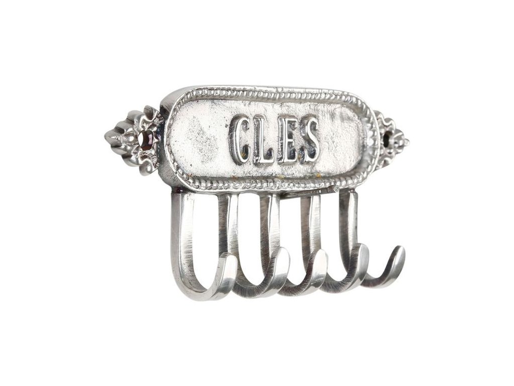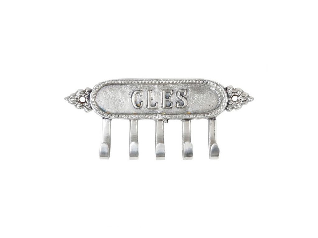 Kovový mosadzný nástenný vešiak na kľúče s nápisom Clés z francúzskej dielne Comptoir de Famille.