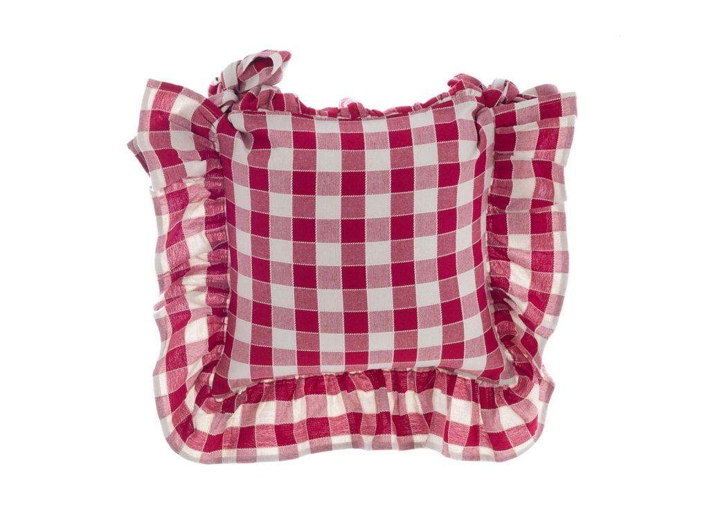 rozmer: 40 × 40 cm • materiál: 70 % bavlna, 30 % syntetické vlákno • farba: červeno-biela • vzor: vichy káro • vlastnosti: volán 10 cm, bez výplne • štýl: vidiecky / romantický / vintage • použitie: interiér – návliečka na vankúš • výrobca: Blanc Mariclò