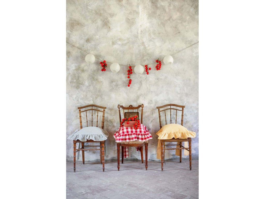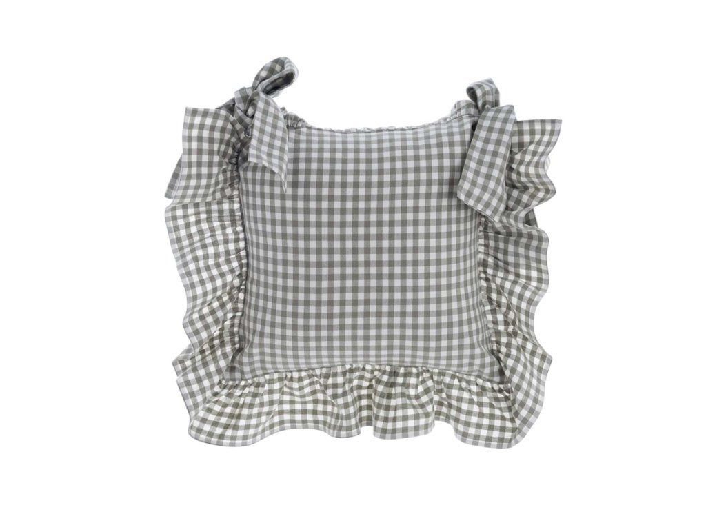 rozmer: 40 × 40 cm • materiál: 70 % bavlna, 30 % syntetické vlákno • farba: zeleno-biela • vzor: vichy káro • vlastnosti: volán 10 cm, bez výplne • štýl: vidiecky / romantický / vintage • použitie: interiér – návliečka na vankúš • výrobca: Blanc Mariclò