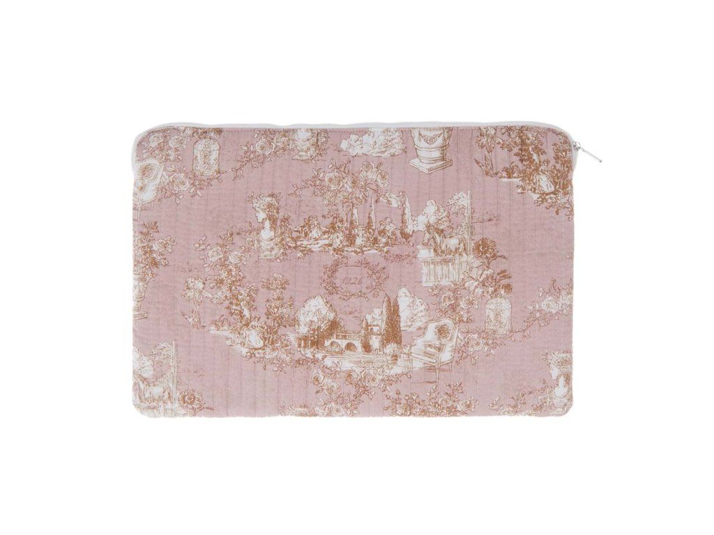 rozmer: 40 × 27 cm • materiál: 100 % bavlna • farba: ružová • štýl: romantický / vintage / francúzsky • použitie: interiér / prenos – obal na notebook • výrobca: Blanc Mariclò