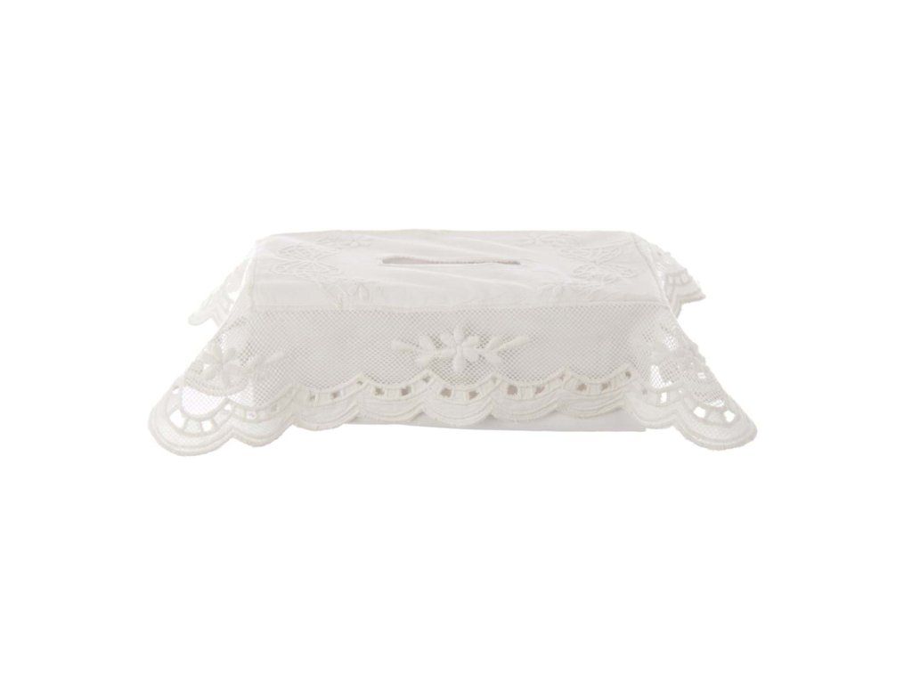 rozmer: 14 × 25 × 16 cm • materiál: 100 % bavlna • farba: biela / ivory • vlastnosti: bez náplne (bez vreckoviek) • štýl: elegantný / romantický / vintage • použitie: interiér – obal na vreckovky • výrobca: Blanc Mariclò