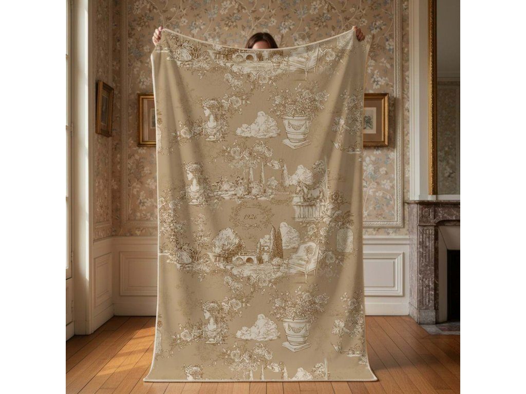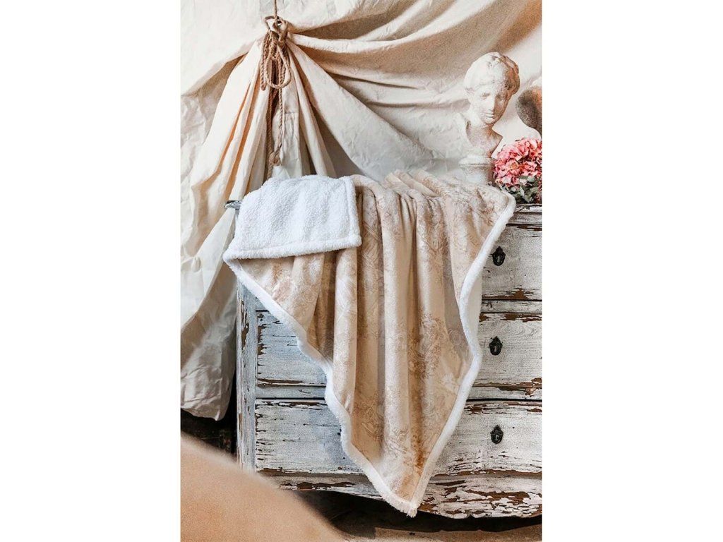 dĺžka: 170 cm • šírka: 140 cm • materiál: 100 % polyester • farba: béžová / biela • gramáž: 440 GSM • štýl: komfortný / elegantný / vintage • použitie: interiér – deka / prehoz • výrobca: Blanc Mariclò