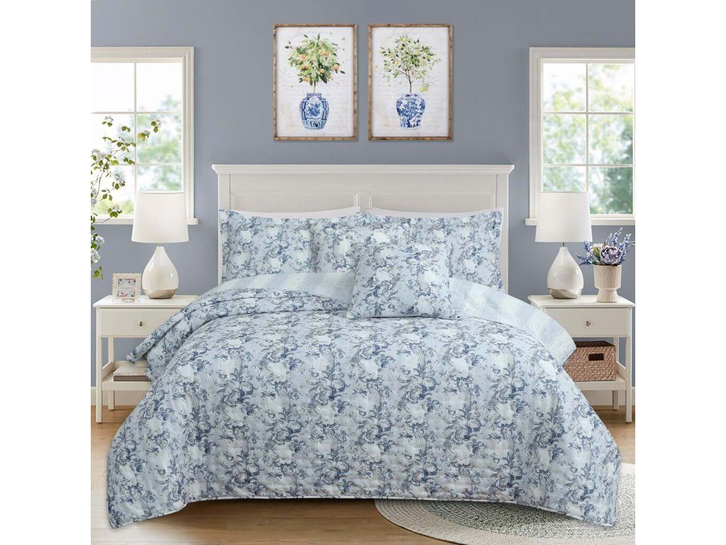 Elegantný a romantický prešívaný prehoz-prikrývka z jemnej mikrofibry s jemnou krajkou z kolekcie Blu Elisa od toskánskeho výrobcu Blanc Mariclò.
