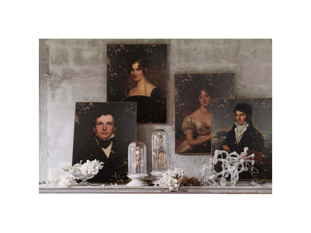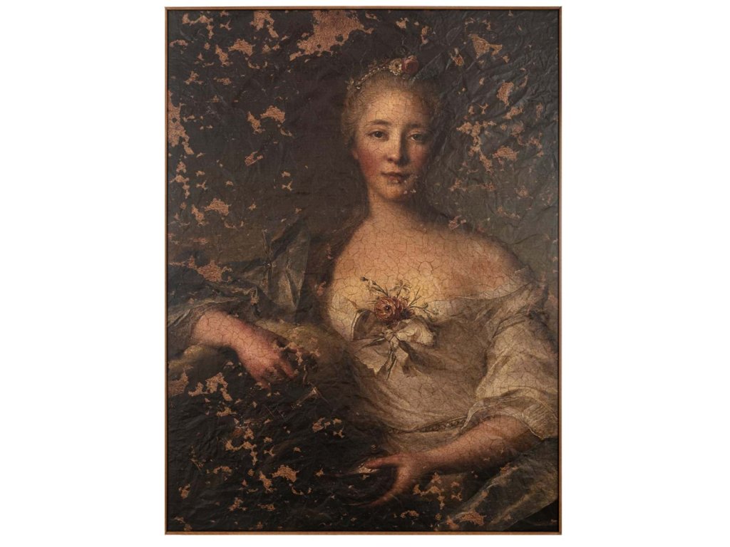 Nástenná dekorácia plátna v ráme s replikou starobylého obrazu dámy.