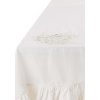 Romantický vyšívaný bavlnený obrus s volánom a čipkou. Originál z dielne Blanc Mariclo. Novinka Jeseň/Zima 2024.