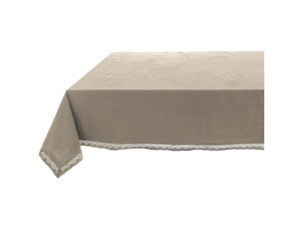 Béžový obrus s čipkou na okrajoch – kolekcia New Infinity, Blanc MariClo’, 150×290 cm.