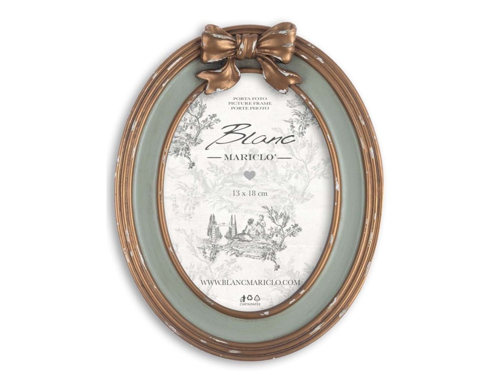 Oválny fotorám s mašličkou – Blanc MariClo’, modrozelenozlatý, 18×23 cm