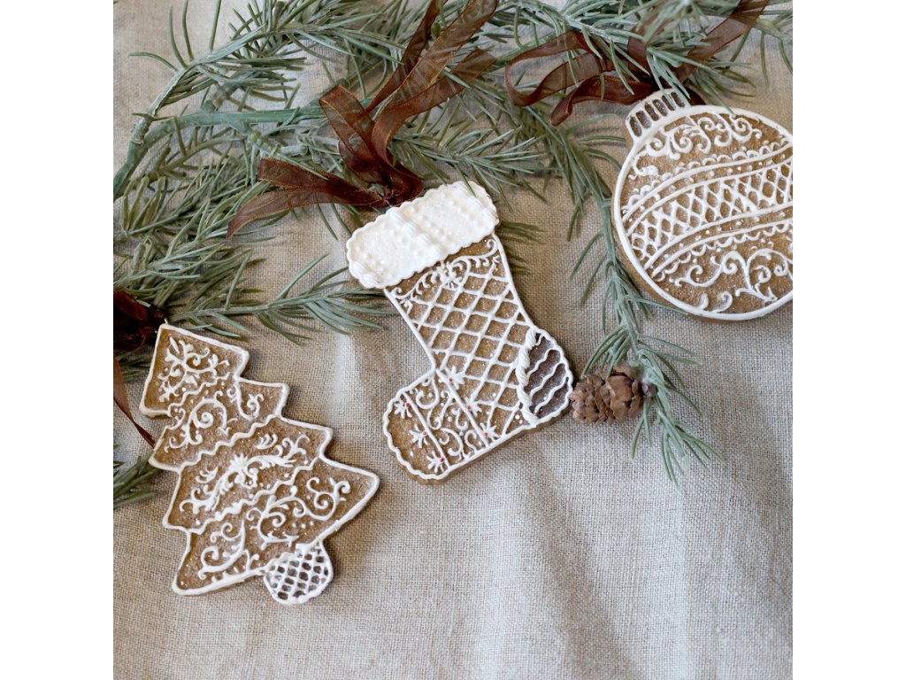 Noël vianočná ozdoba – stromček v štýle perníka, mocca, Chic Antique.