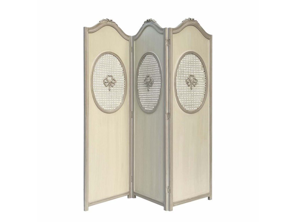 Trojdielny paraván s vyrezávaním a ornamentami z francúzskeho ratanu z dielne Blanc Mariclo.