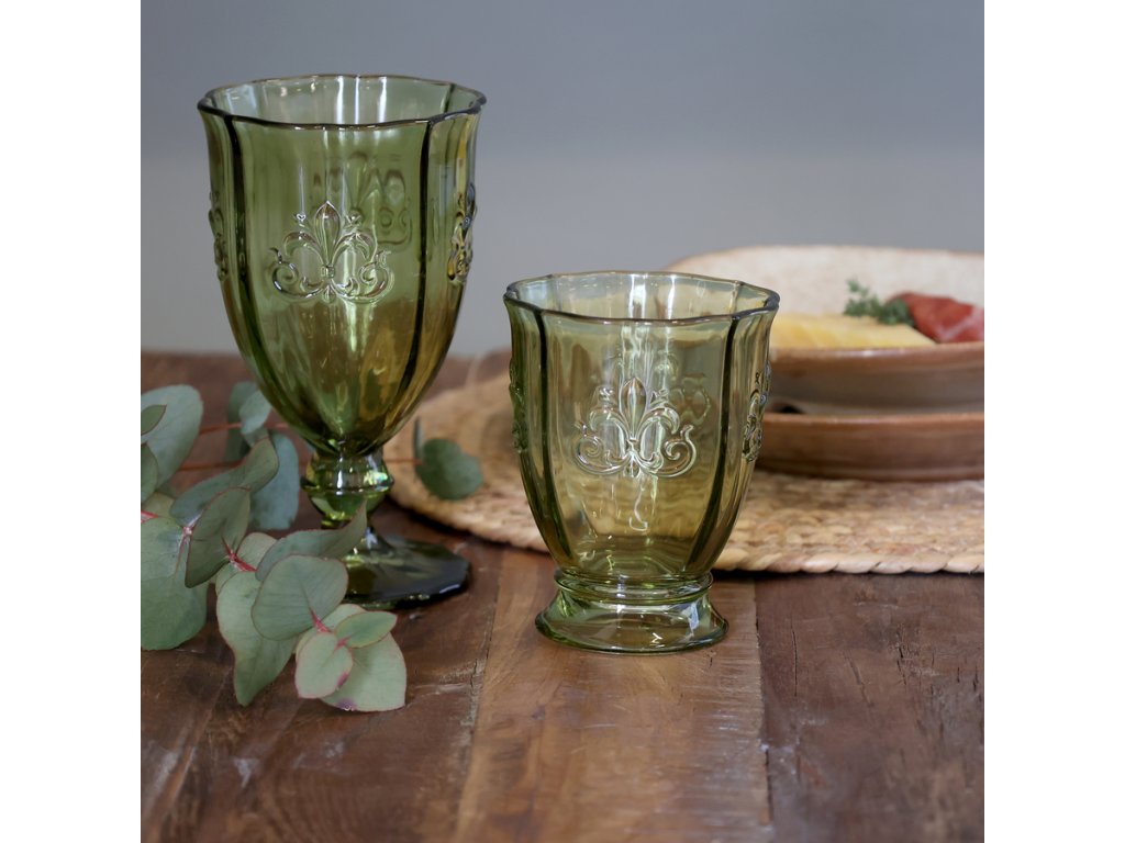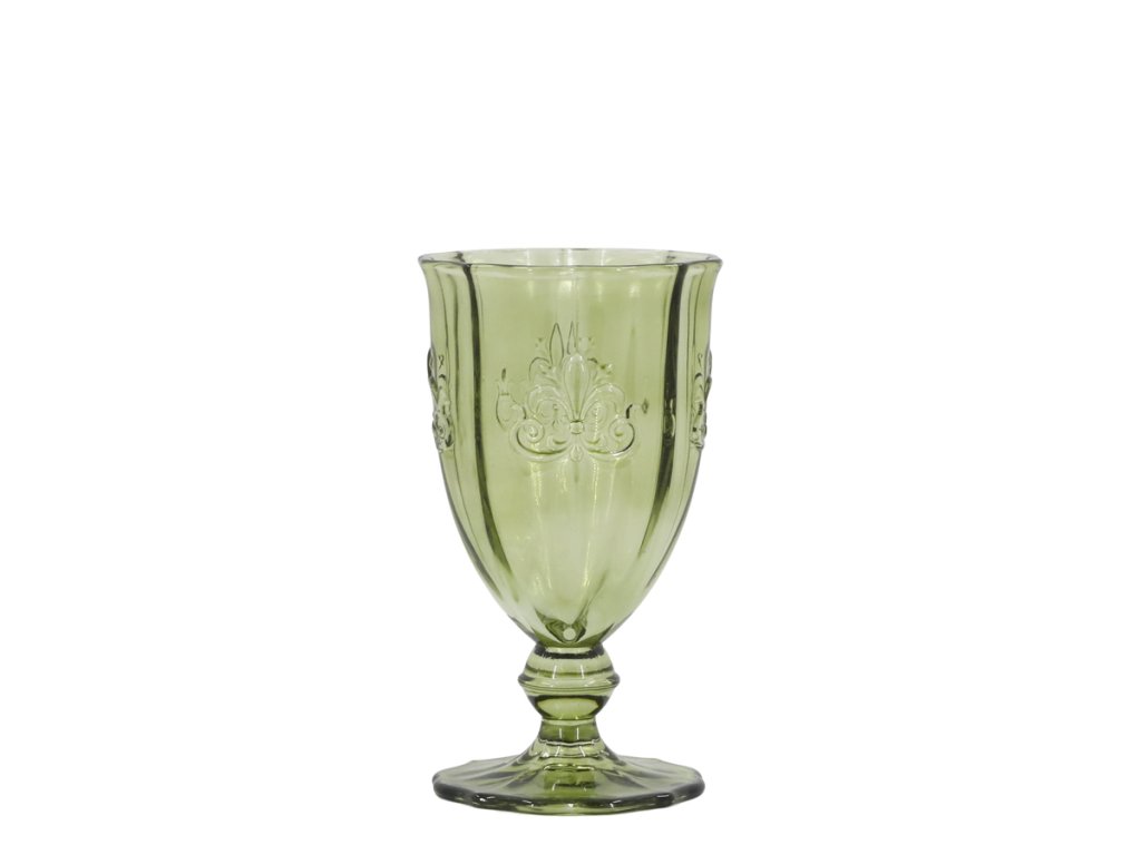 Saint-Émilion vínový pohár s dekorom – Chic Antique, H16/D9 cm, olivový odtieň