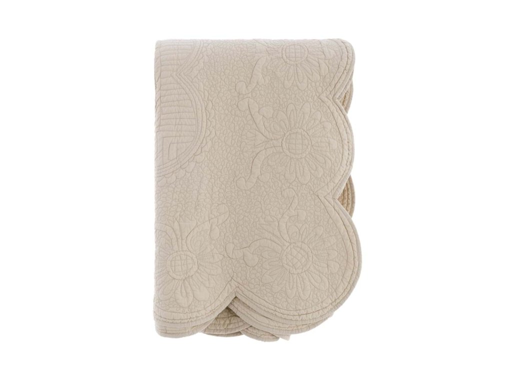 rozmery: 250 × 260 cm • materiál: 100 % bavlna • úprava: prešívaná, ozdobný okraj • štýl: vintage / shabby chic • použitie: prikrývka