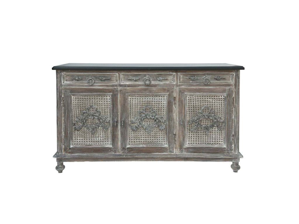 výška: 86 cm • šírka: 142 cm • hĺbka: 45 cm • materiál: mangové drevo, MDF, ratan • farba: hnedá s bielou patinou • štýl: vintage / rustikálny / vidiecky • použitie: interiér – jedáleň, obývačka, kuchyňa • výrobca: Blanc Mariclò