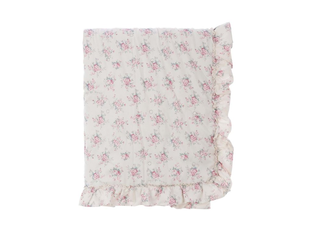 rozmer: 180 × 260 cm • materiál: 100 % mikrovlákno • gramáž: 260 GSM • farba: béžový podklad, ružové jemné kvietky • vzor: kvetinový (ružičky) • zakončenie: ozdobný volán • štýl: romantický / francúzsky vidiek • použitie: prehoz na dvojposteľ • kolekcia: Incanto Fiorit • výrobca: Blanc Mariclò