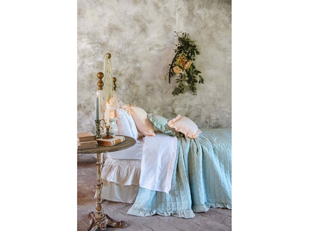 Prešívaný prehoz na dvojposteľ z kolekcie Sogno Vichy zaujme nadčasovým vzorom malých štvorčekov (vichy), ktorý pôsobí sviežo a zároveň romanticky. Zelené prevedenie dodáva spálni príjemnú vidiecku atmosféru v štýle francúzskeho countryside.