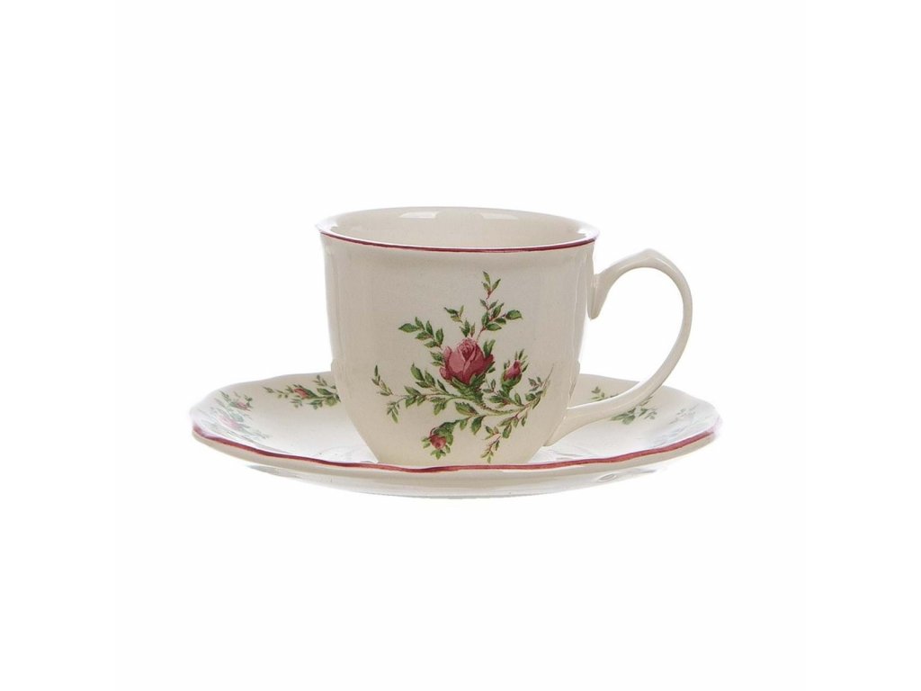 ŠÁLKA S PODŠÁLKOU MOSS ROSA BLANC MARICLO s kvetinovým ornamentom z glazovanej keramiky. Vhodný do umývačky aj mikrovlnky.