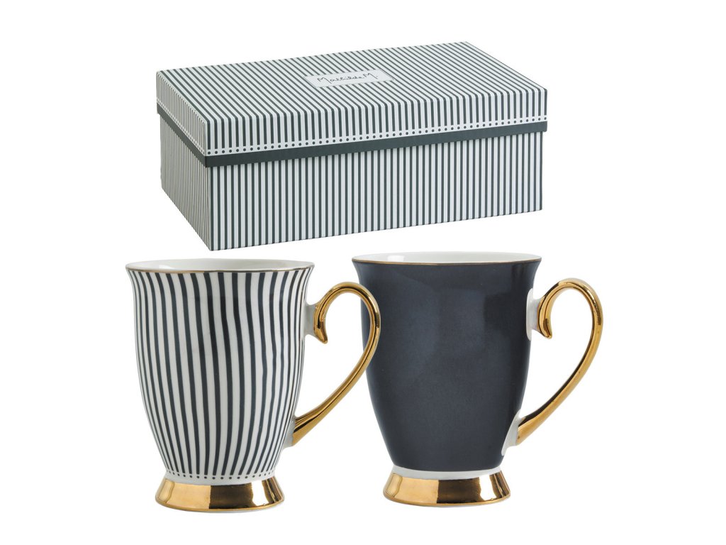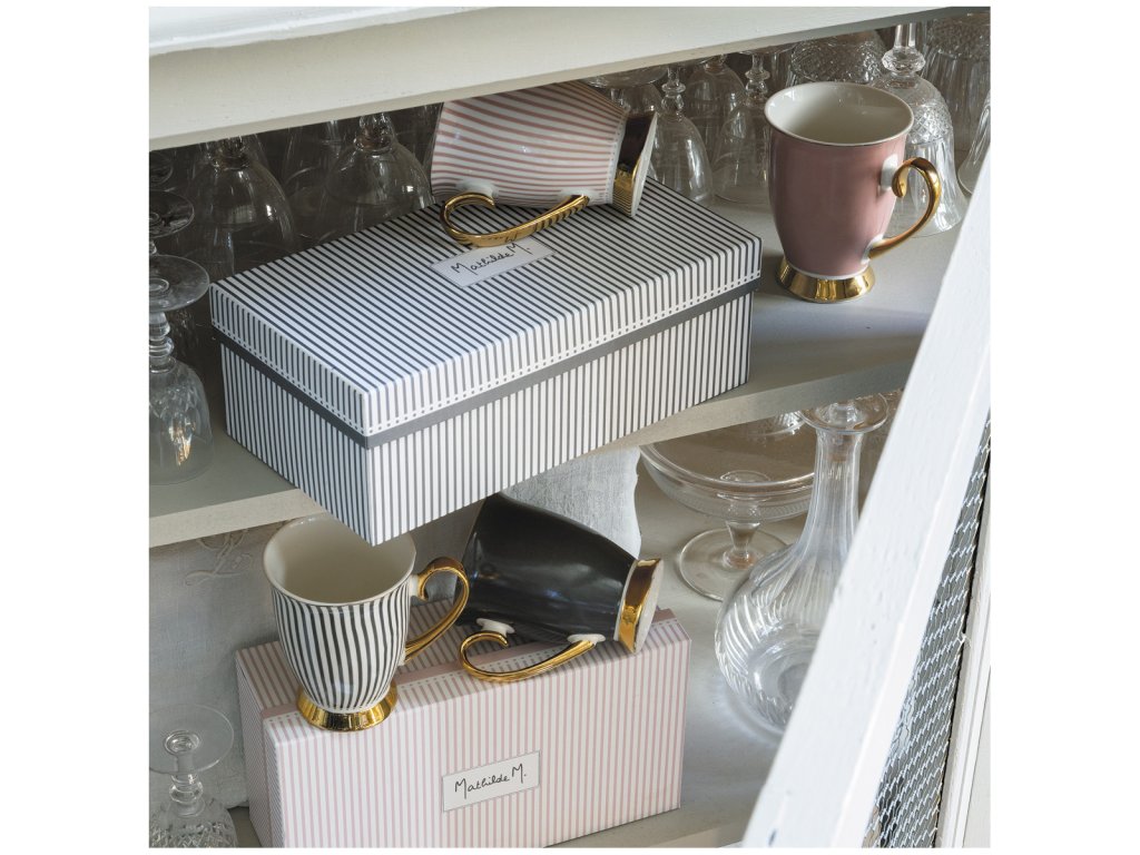 Dodajte svojmu stolu nádych elegancie kedykoľvek počas dňa s touto sadou dvoch čiernych hrnčekov Madame de Récamier. Ich dizajn vás očarí čistými líniami a elegantnými zlatými akcentmi.