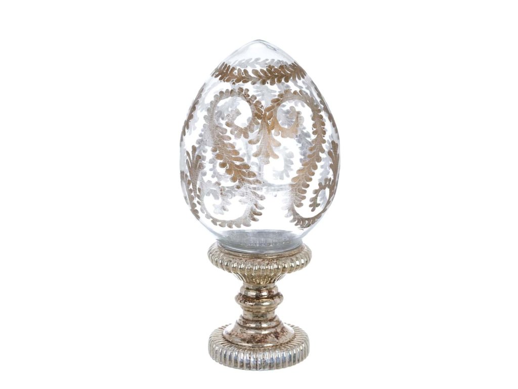 Dekoratívne vajíčko na podstavci Blanc Mariclo – 19 × 36 cm, sklo so zlatou patinou, kolekcia Nocturna Aurea