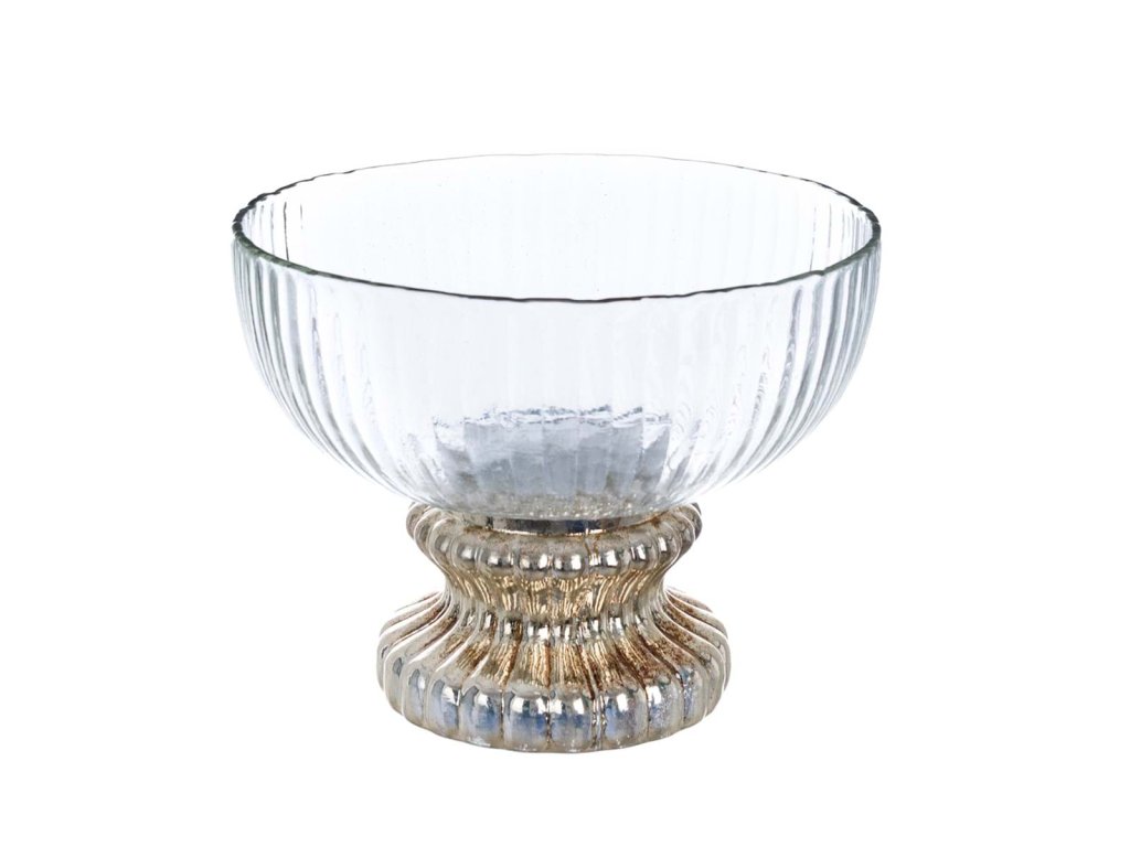 Dekoratívna misa s podstavcom Blanc Maricló – 27 × 27 × 21 cm, vrubkované sklo so zlatou podnožou, kolekcia Nocturna Aurea