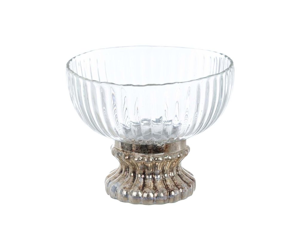 Dekoratívna misa s podstavcom Blanc Maricló – 17 × 17 × 22 cm, vrubkované sklo so zlatou podnožou, kolekcia Nocturna Aurea