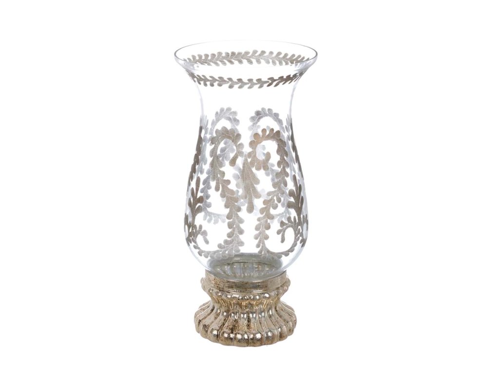 Luxusná dekoratívna váza s podstavcom od talianskej značky Blanc Maricló z kolekcie Nocturna Aurea je výnimočným interiérovým doplnkom, ktorý vynikne na stole, komode či konzole. Vyrobená z kvalitného skla so zlatou patinou a zdobená vybrúsenými zlatými ornamentmi, pôsobí elegantne, slávnostne a dodá priestoru noblesný lesk. Tento originálny výrobok z toskánskej dielne je navrhnutý s dôrazom na detail, remeselnú precíznosť a nadčasový dizajn.