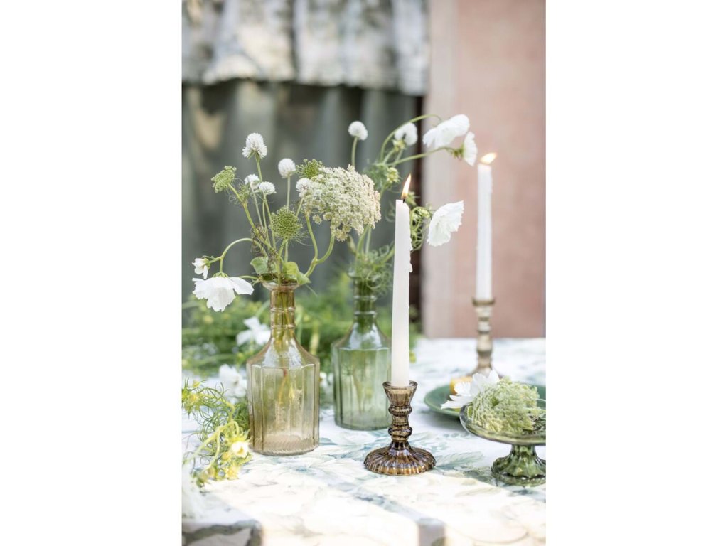 Jedinečný sklenený svietnik na 1 sviečku ako originálny interiérový doplnok. Originál z dielne Blanc Mariclo. Kolekcia Vent du Sud.