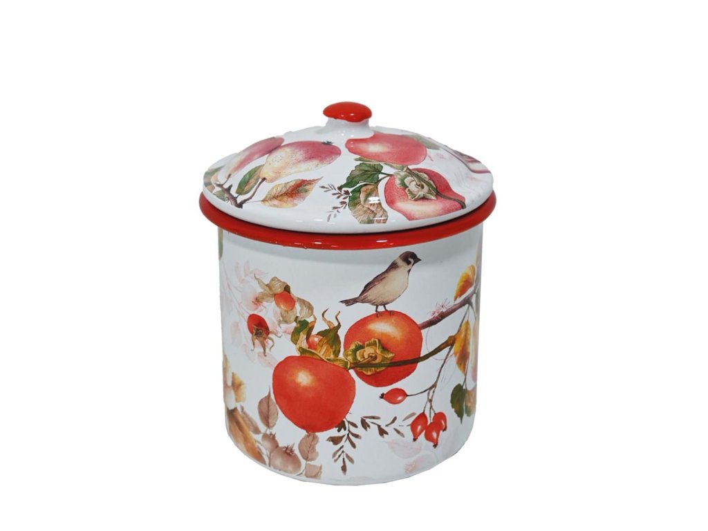 Smaltová nádoba s vrchnákom – Kolekcia Persimmon od Blanc Mariclò.