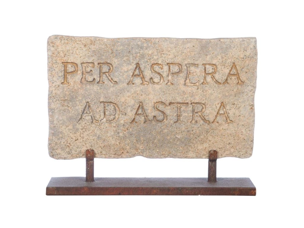 Starobylá tabuľa s nápisom „Per Aspera Ad Astra“ na podstavci – Blanc Mariclo (A39288)
