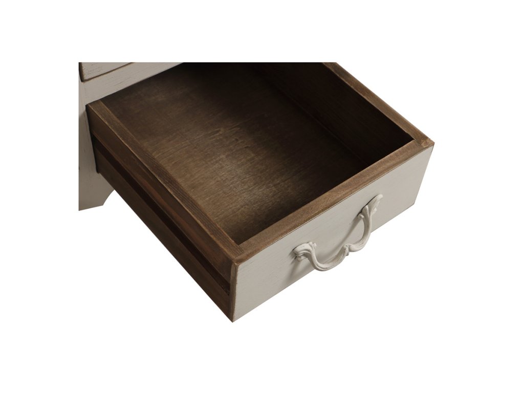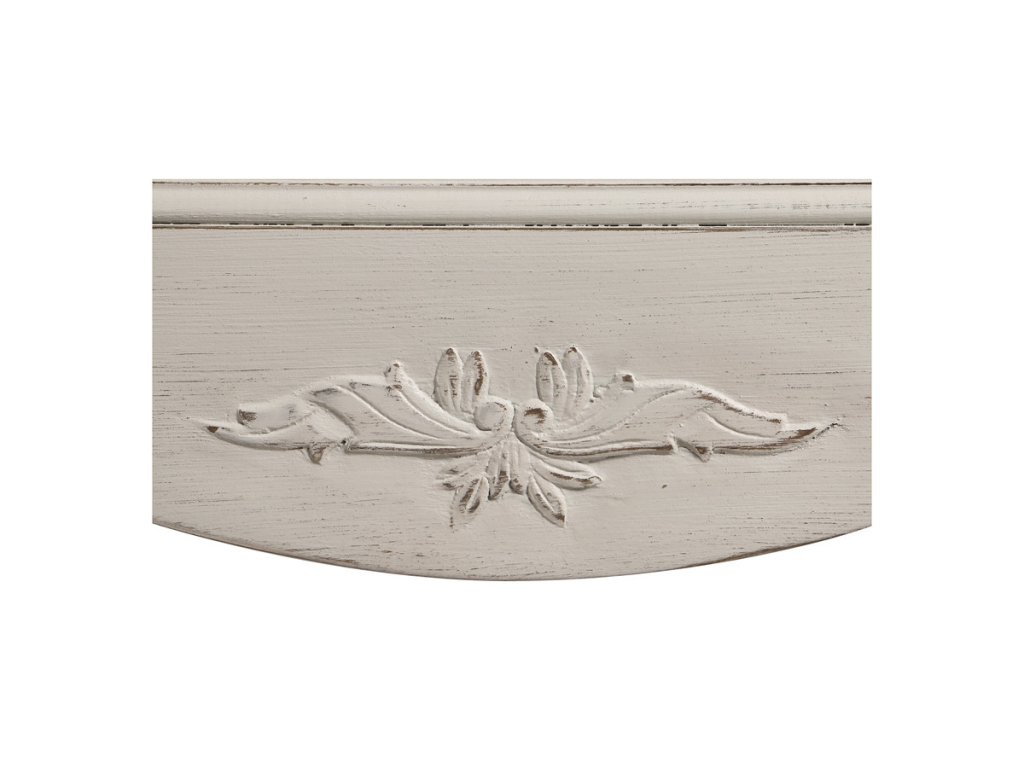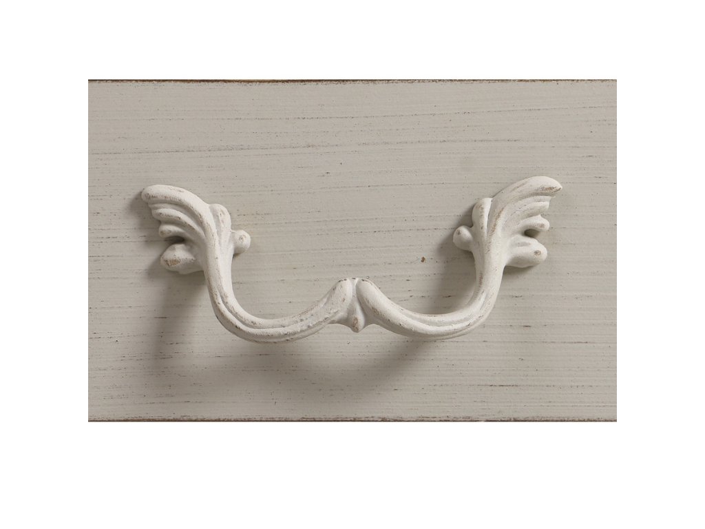 Písací stôl zo zásuvkami zo série Chateau Blanc. Jednotlivé prvky kolekcie Chateau sú remeselnícky stvárnené. Vyrezávané nohy a dvierka sú zdobené decentnými plastickými ornamentmi. Kovanie je z tepaného železa a každý kus je krásne patinovaný.