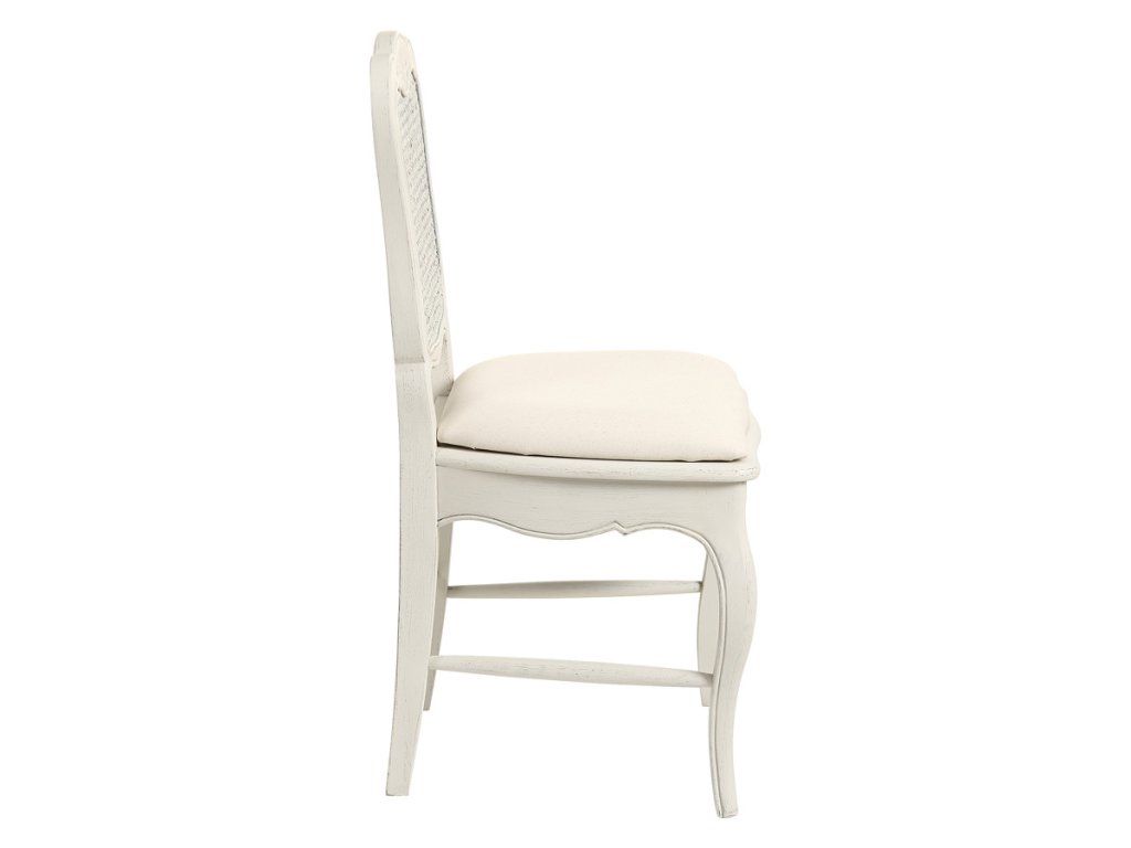 Elegantne tvarovaná stolička s výpletom. Vynikne v kombinácii s ostatnými výrobkami Chateau. Jednotlivé prvky kolekcie sú remeselnícky stvárnené. Vyrezávané nohy a dvierka sú zdobené decentnými plastickými ornamentmi a každý kus je patinovaný.