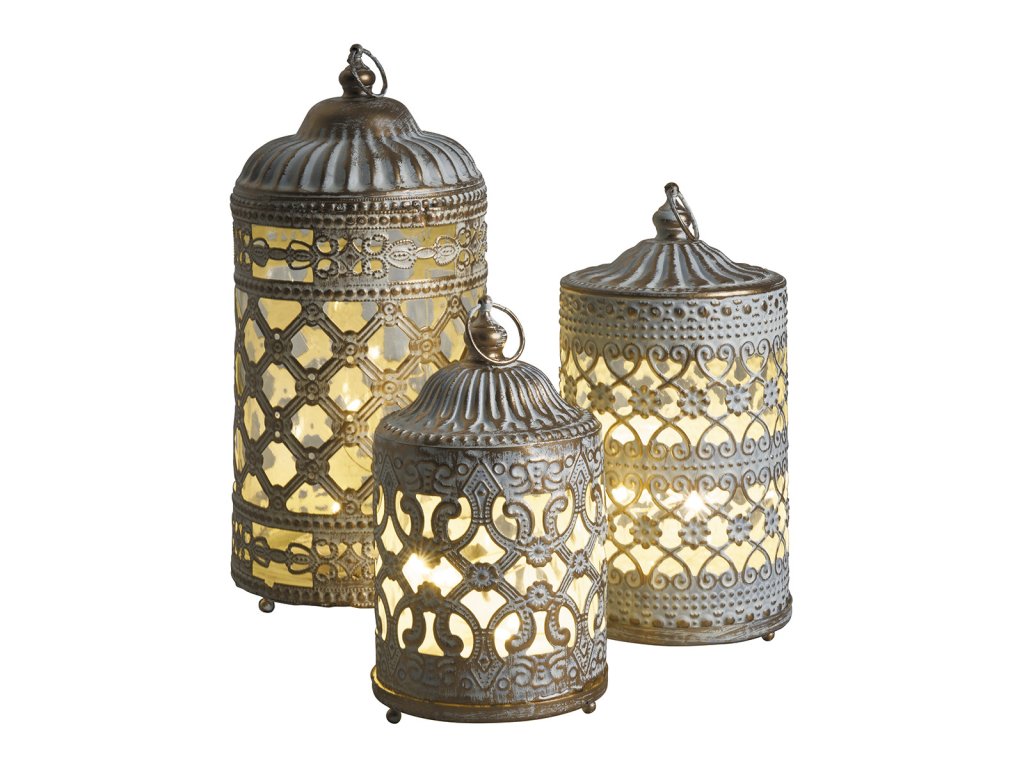 Lanterna z kovu so zabudovaným LED svetielkom. Tento stredný model svietnika Jardin d'Ailleurs plný elegancie a detailov vnesie do vašej dekorácie nádych exotiky a originality.