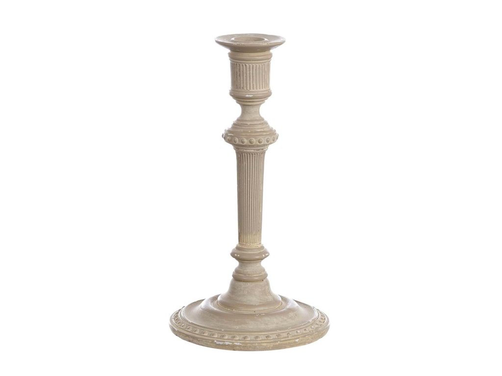 Svietnik v béžovej farbe vyrobený z polyresinu.