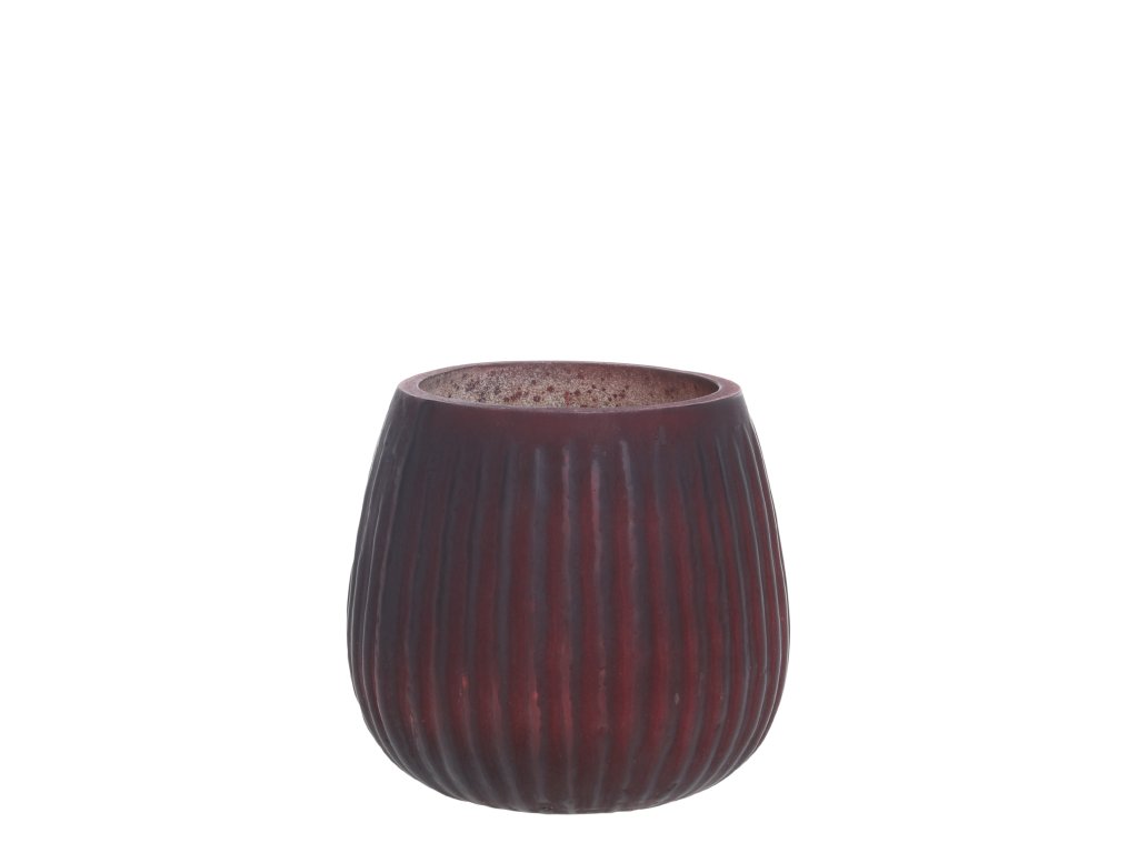 Sklenený svietnik s vrúbkovaním mercury. Červená patina cherry so striebornou. Originál z dielne Chic Antique.