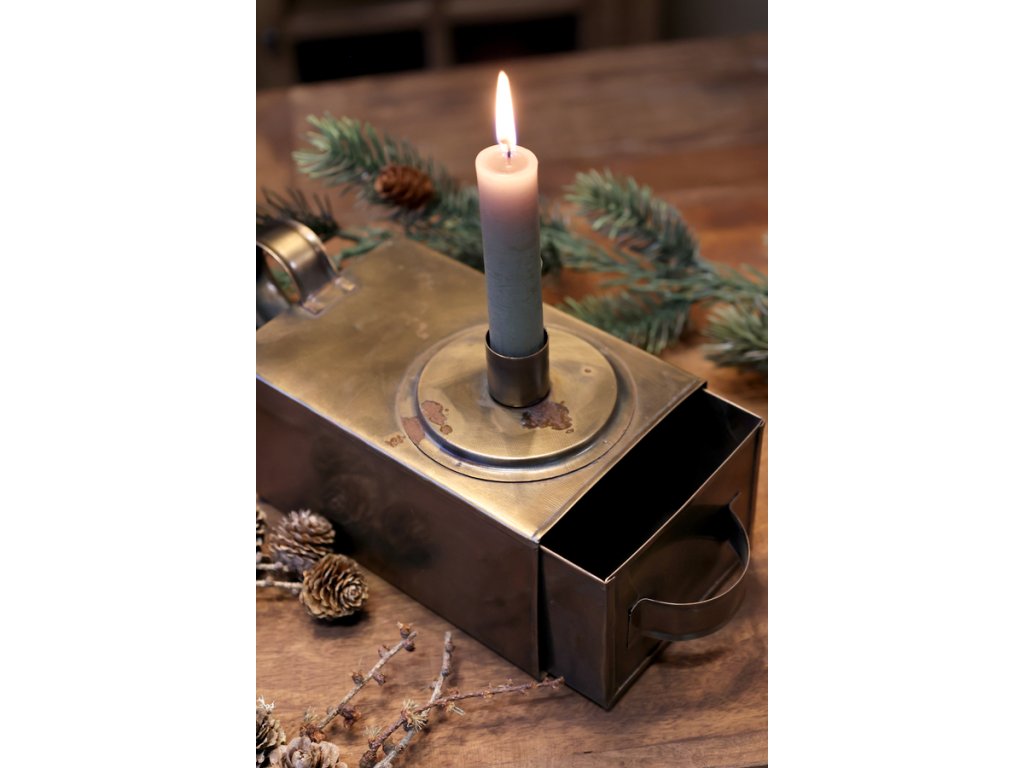 Kovová skrinka s výsuvnou zásuvkou a držiakom na sviečku – antique brass, Chic Antique.