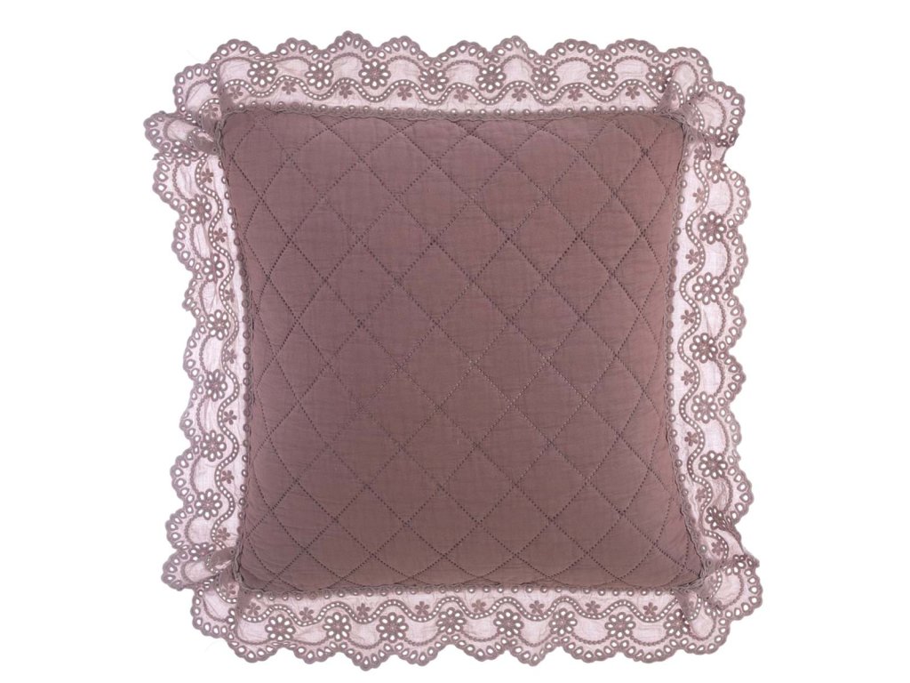 Prešívaný ružový vankúš s madeirovou čipkou – Blanc MariClo’, 45×45 cm, 200 GSM, s výplňou.