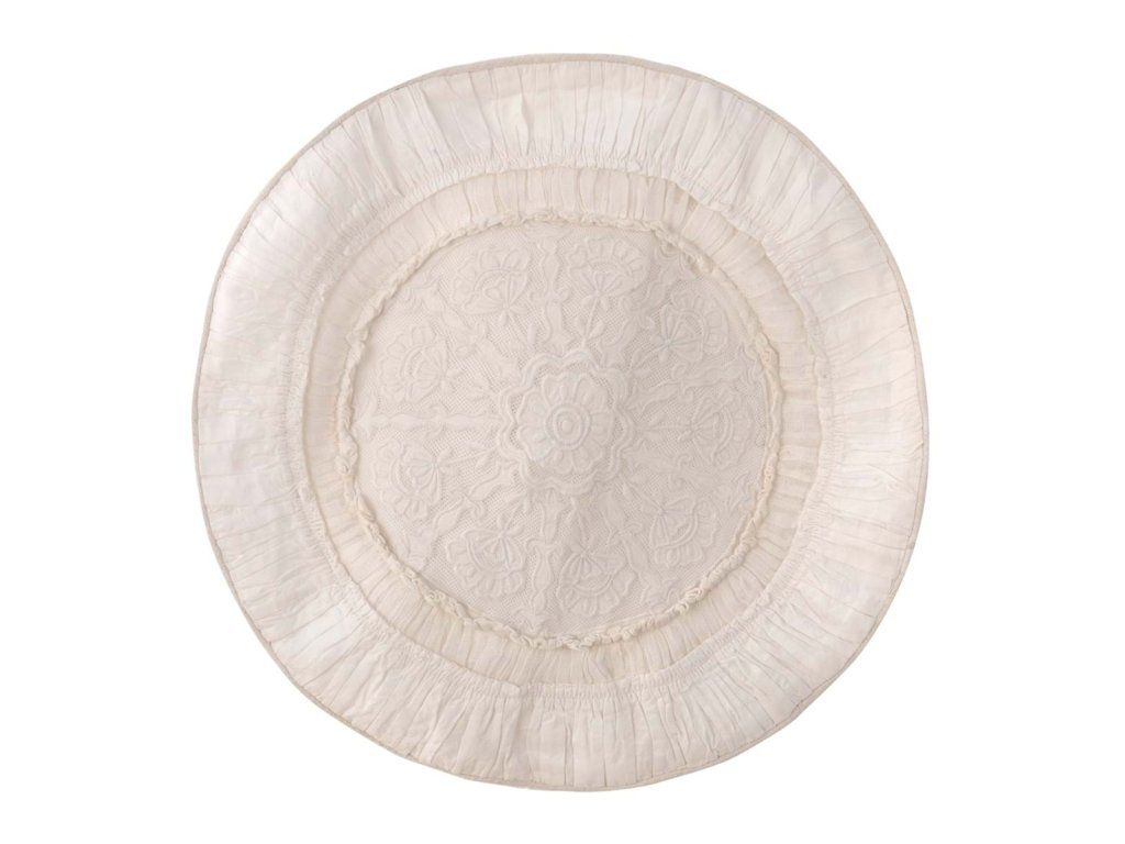 rozmer: 45 × 45 × 6 cm • materiál: 100 % bavlna • farba: biela / ivory • vlastnosti: výšivka, okrúhly tvar, s výplňou • štýl: romantický / elegantný / vintage • použitie: interiér – dekoračný vankúš • výrobca: Blanc Mariclò
