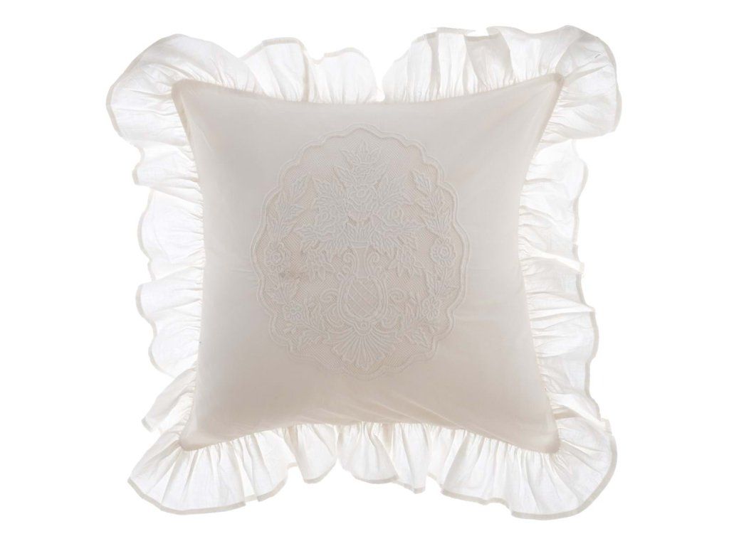 rozmer: 45 × 45 cm • materiál: 100 % bavlna • farba: biela / ivory • vlastnosti: výšivka, s výplňou • štýl: romantický / elegantný / vintage • použitie: interiér – dekoračný vankúš • výrobca: Blanc Mariclò