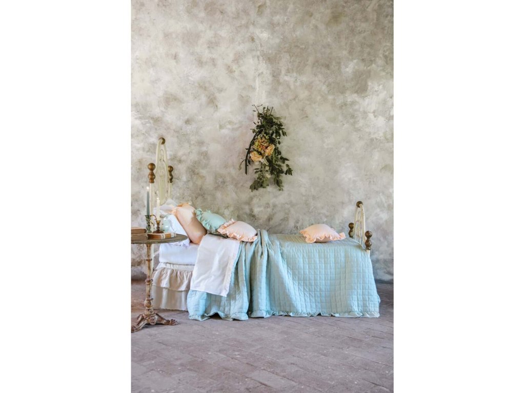 rozmer: 45 × 45 cm • materiál: 100 % mikrovlákno • farba: zelená • vzor: malý štvorček (VICHY) • prevedenie: s volánom • výplň: áno • štýl: romantický / vidiecky • použitie: obývačka, spálňa • výrobca: Blanc Mariclò