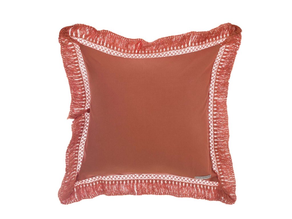 Oranžový bavlnený vankúš so strapcami po obvode – Blanc MariClo’, 45×45 cm.