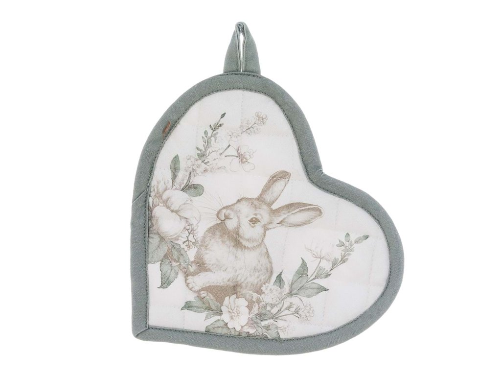 Nádherná srdiečková chňapka navrhnutá v dielni Blanc Mariclo' pre novú kolekciu "Les Jardin des Lapins", charakteristická je sviežou veľkonočnou potlačou v zelených tónoch. Ideálne pre rôzne interiéry, od najelegantnejších až po vidieckejšie. Zloženie: 70% bavlna 30% syntetické vlákno. Originál z dielne Blanc Mariclo. Cena za kus.