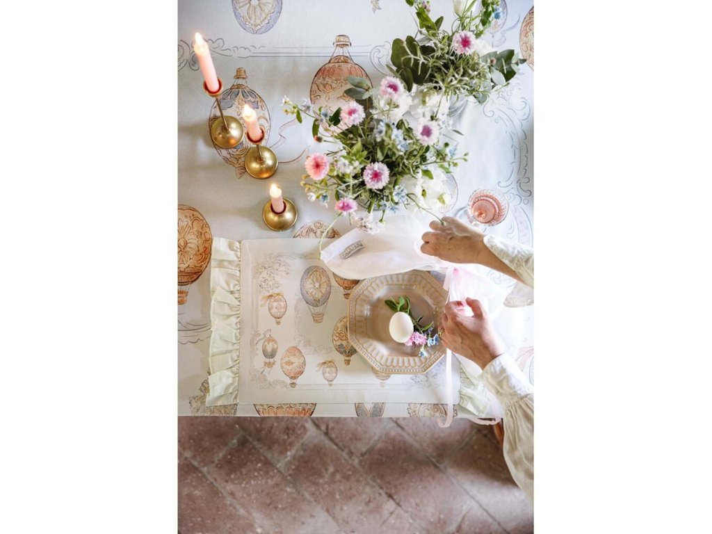 Elegantné bavlnené prestieranie s volánom je romantickým doplnkom veľkonočného aj celoročného stolovania. Jemný vidiecky vzhľad a dekoratívny volán po okrajoch dodávajú prestieraniu typický shabby chic charakter a vytvárajú sviatočnú, útulnú atmosféru na stole.