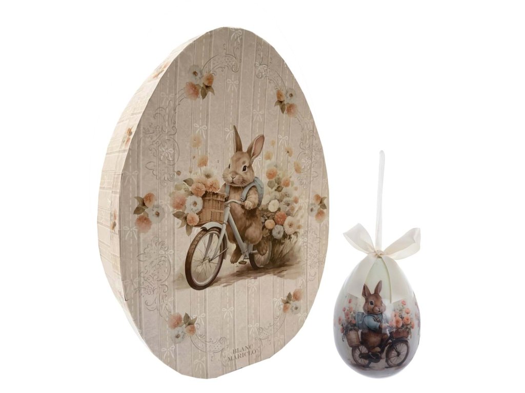 rozmer boxu: 22,5 × 30,5 × 10 cm • priemer vajíčka: 7 cm • počet kusov: 8 ks • farba: krémová • motív: zajačik na bicykly • materiál: polyfoam / papier • kolekcia: Uova Incantate • štýl: veľkonočný / romantický • použitie: jarná a veľkonočná dekorácia • výrobca: Blanc Mariclò