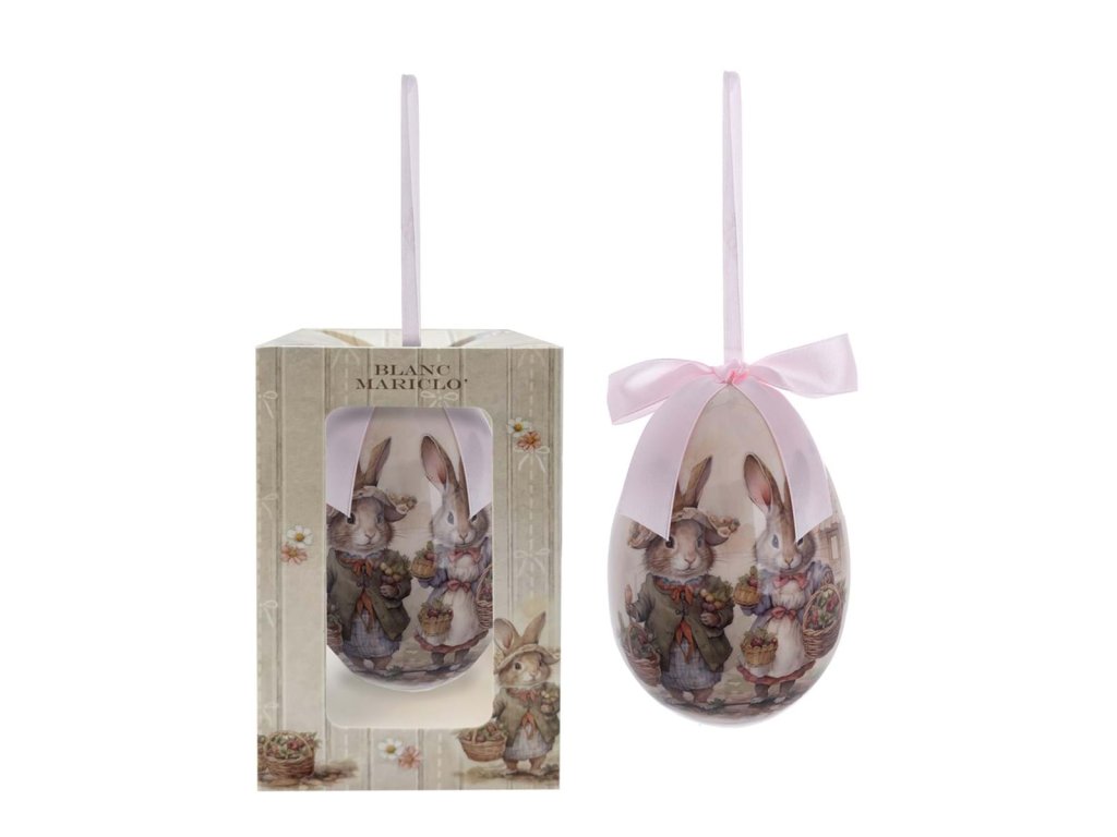 rozmer boxu: 8,7 × 8,7 × 14,5 cm • priemer vajíčka: 8,5 cm • počet kusov: 1 ks • motív: zajačik • detail: mašlička • materiál: polyfoam / papier • štýl: veľkonočný / romantický • použitie: veľkonočný darček, sezónna dekorácia • výrobca: Blanc Mariclò